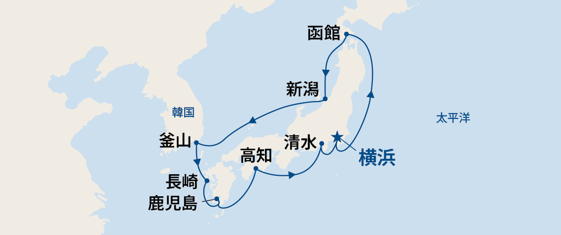 | 1日目 | 2026年5月18日 | 横浜 | 午後乗船 | 15:00 |